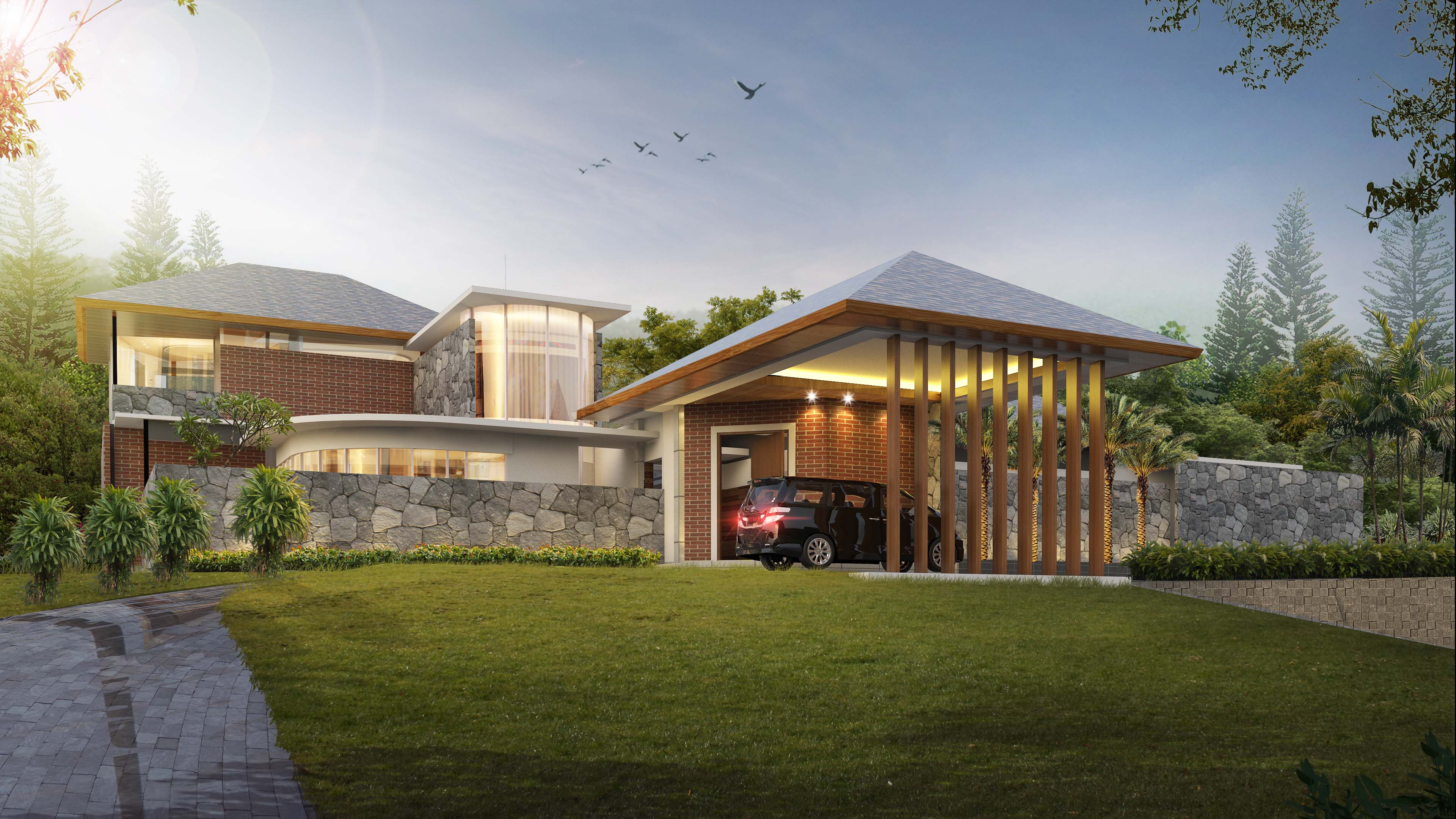 Rumah Kudus is a mansion with approximately 2,400m² of building area on a 6,000m² site. Located on a serene area, far from the noise and polution, and having a long far inside entrance from the side oh the road, gave us so many advantages to maximize the function of the building itself.